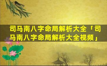 2、司 🐟 马南八字命局解析 🦉 大全视频