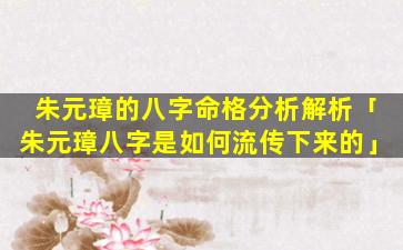 朱 🌷 元璋的八字可能是保存在皇家档案中的,后被后人整理挖掘。