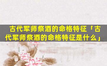 3、古代军 🦊 师祭酒的命格特征有哪些