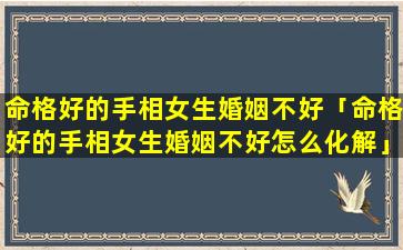 命格好的手相女生 🐵 婚姻不好的化解方法: