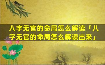 八 🐠 字无官的命局 🕷 解读