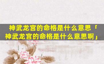 1、神武龙宫的 🐅 命格是什么 🦊 意思