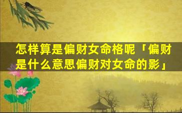 1、怎样 🦢 算是偏财女命 🪴 格呢