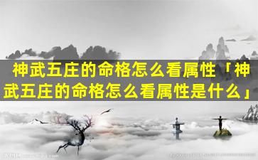 2、神武五庄的命格怎么看属性是什 🐵 么