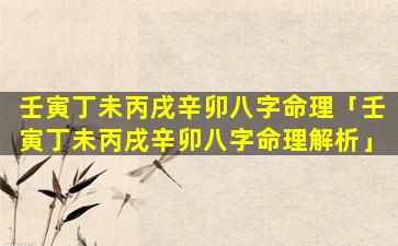2、壬 🐟 寅丁未丙戌辛卯八字命理解析