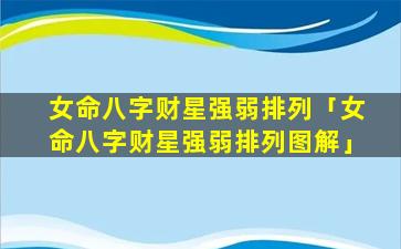 3、女命八字财 🍁 星 🦢 强弱排列详解