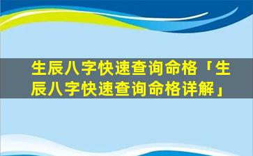 2、生辰八字快速查询命格 💐 详 🐎 解