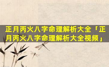 2、正月 🍀 丙火八字命理解析大全 🕊 视频