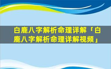3、白鹿八字解 🐦 析命理详解大 🐬 全