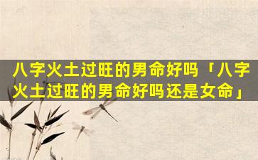 2、八字 🌵 火土过旺的男命好吗还是女命