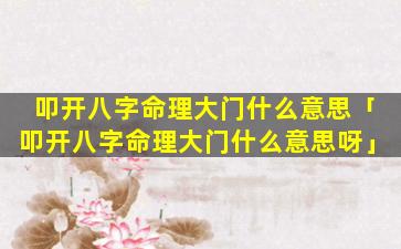 1、叩 🦢 开八字命理大门什么 🌵 意思
