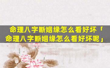 2、命理八字断姻缘怎么看好坏呢 🐺