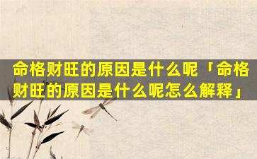 2、命 🐝 格财旺的原因是什么呢 🐴 怎么解释