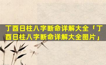 丁酉日柱八字断命 🍀 详解大 🐠 全