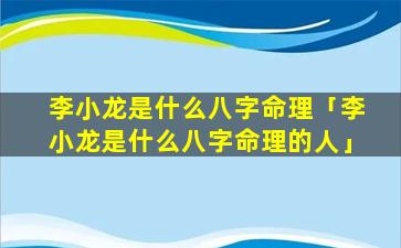 2、李小龙是什么八 🌿 字命理 🦍 的人