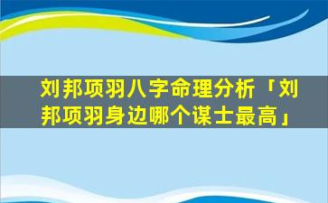 2、刘邦项羽身 🕊 边哪个谋士最高