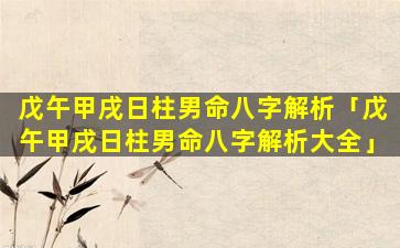 2、戊午甲戌 🦅 日柱男命八字解析大全