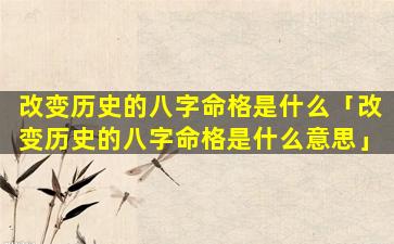 2、改变历 🌵 史的八字命格是什 🌴 么意思