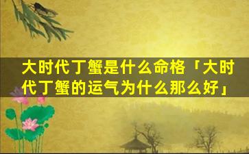 阴差阳错2、大时代 🕊 丁蟹的运气为什么那 🦈 么好?