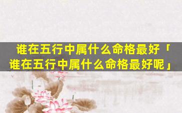 1、谁在五行中 🐧 属什 🌷 么命格最好