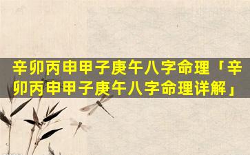 2、辛卯丙申甲子庚 🐎 午八字命理详解 🕷