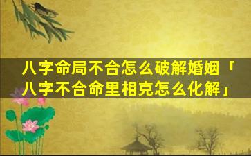 破解八字命局不 🐘 合对婚姻影响 🦟 的办法