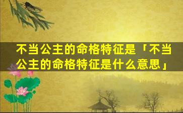 2、不 🐴 当公主的命格特征是什 ☘ 么意思