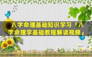 八字命理学基础教 🍁 程解读视 🦍 频