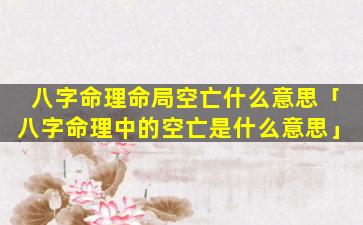 八字 🌾 命理 🐒 中的空 🐯 亡