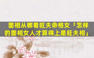 4、面相从哪看旺夫命格 🌳 女生