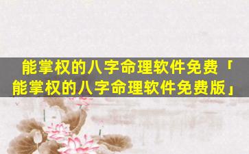 2、能掌权的八字命理软件免 🌼 费 🌹 版