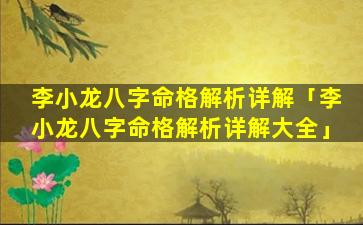 3、李 🌿 小龙 🕸 八字命格解析详解视频