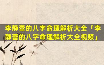 1、李静蕾 🌼 的八字命理解析大 🐱 全