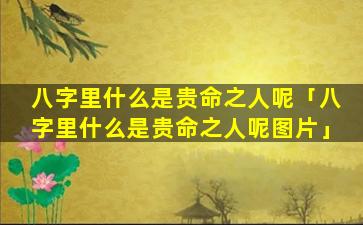 1、八字里什么 🐴 是贵命之人 🐈 呢