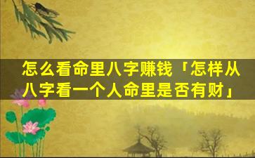 1、怎 🦅 么看命 🐵 里八字赚钱