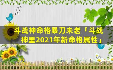 2021 年《斗战神 🌾 》新 🐅 命 🐱 格属性: