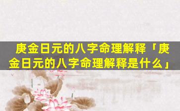 1、庚金日元的 🐅 八字命理解 🌸 释