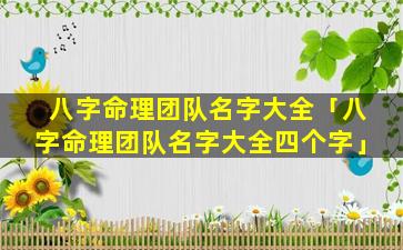 八字命理团队名字大全「八字命理团队名字大全四个 🌸 字 🌹 」