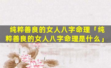 3、纯粹 💐 善良 🦋 的女人八字命理怎么样