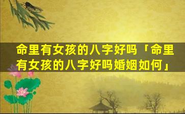 1、命里有女孩的 🌲 八字好 🦁 吗