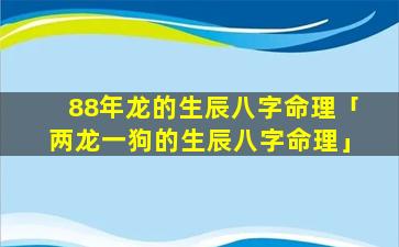 2、两龙一狗的 🌲 生辰八字 🌼 命理