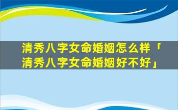清 🕸 秀八字女命婚 🐝 姻好不好