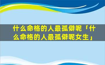 2、什么命格的人最孤 🦟 僻呢女生 🌵