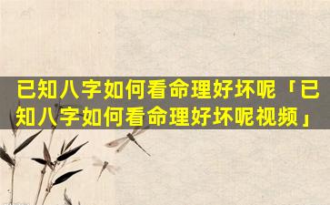 1、已 🌵 知八字如何看命理好坏呢 🌼