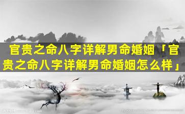 3、官贵之命八字详解男命婚姻 🐘 如何