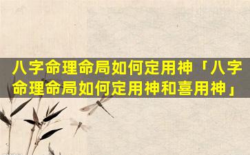 2、八字命理命局如何 🦈 定用 🌷 神和喜用神