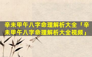 辛未甲午八 🐎 字命 🐬 理解析大全视频