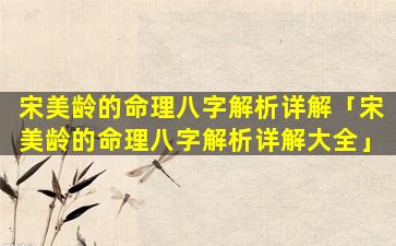 3、宋美龄的命理八字解析详解 🕸 视频 🐦