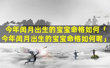 1、今年 🦟 闰月出生 🪴 的宝宝命格如何