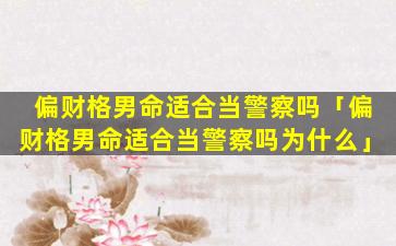 2、偏财格男命适合 🐺 当 🐘 警察吗为什么